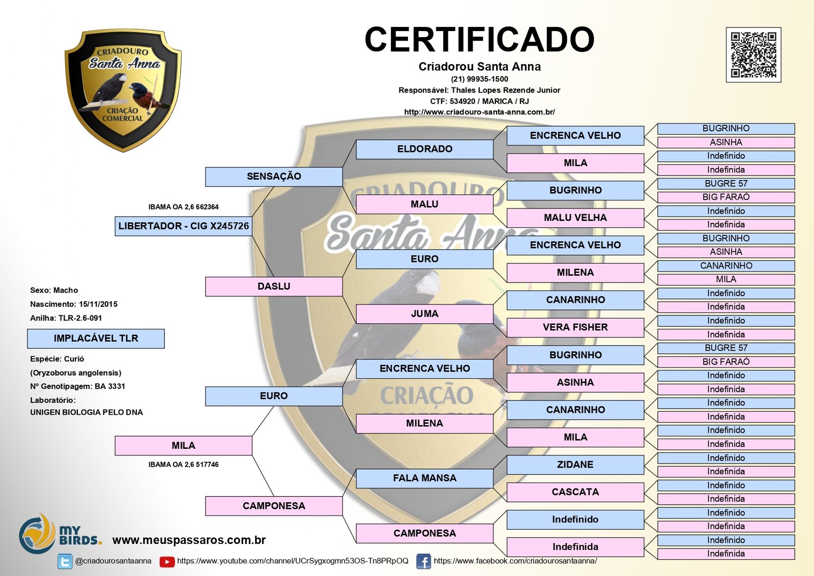O IMPLACAVEL TLR e um dos primeiros filhos do LIBERTADOR que foi um curió fora de serie, crônico nunca esfriava, o maior reprodutor que eu já vi, tirou centenas de filhos, deixou muitas saudades, além de ter uma genética fechadíssima na raça encrenca, ele era muito repetidor chegando fácil aos 2 minutos de canto na cara de seus oponentes e com uma bitola de canto que se ouvia do outro lado da roda, ele foi tirado pelo amigo Ezio de Mato Grosso .