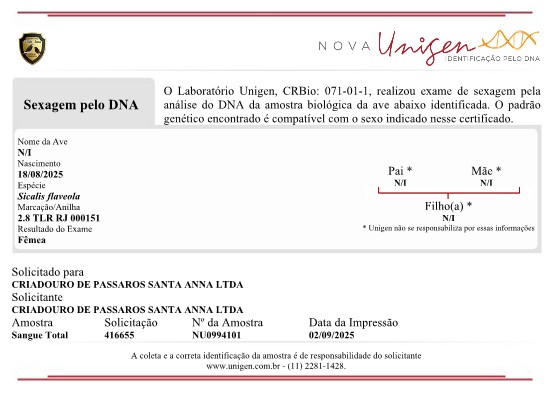 CANÁRIO FÊMEA 2.8 TLR RJ 000151