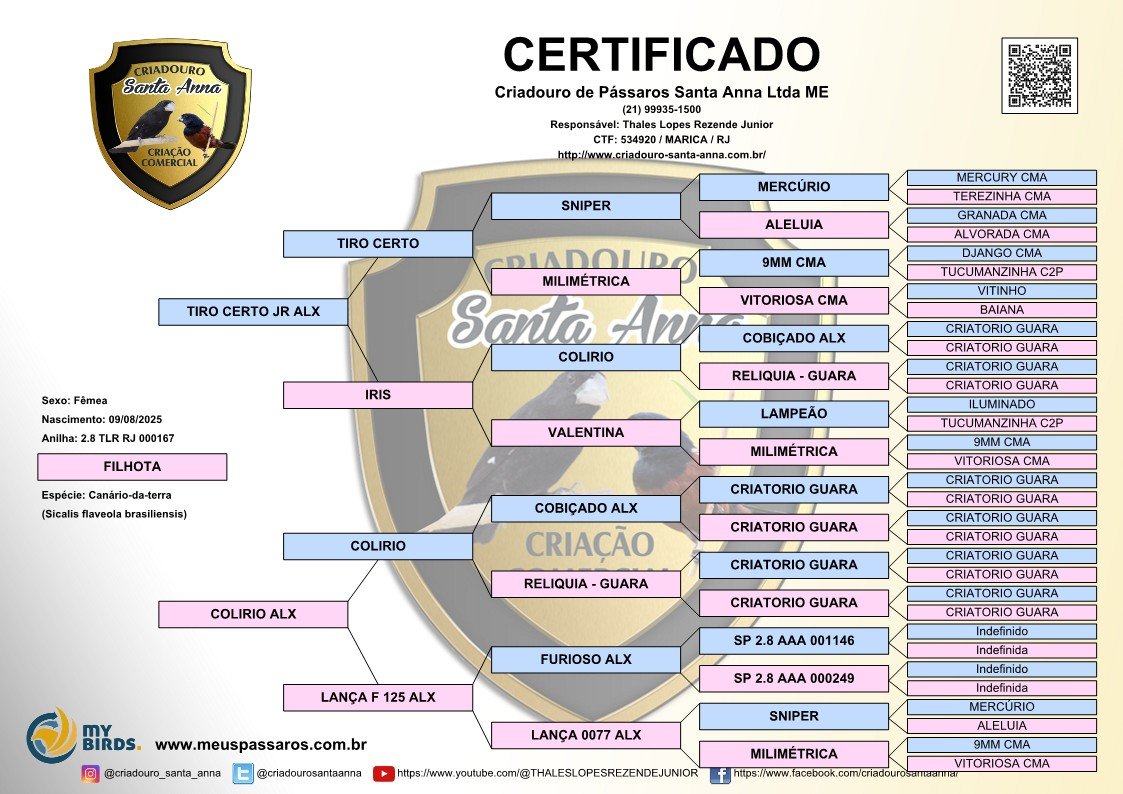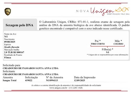 - Em caso de envio aéreo, será necessário fazer um deposito na conta do Criatório para cobrir as despesas extras, no valor de R$627,00