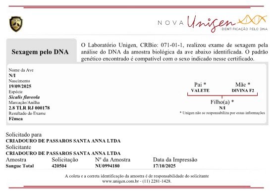 - Em caso de envio aéreo, será necessário fazer um deposito na conta do Criatório para cobrir as despesas extras, no valor de R$627,00