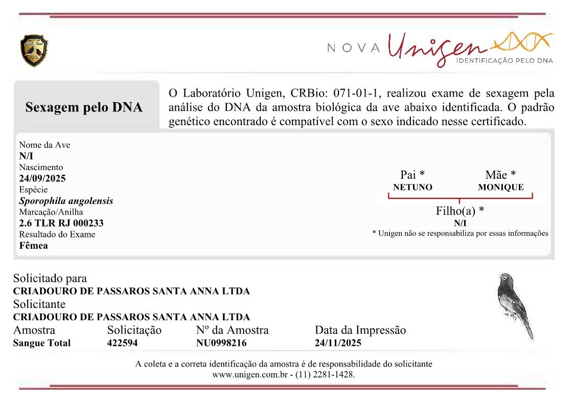Em caso de envio aéreo, será necessário fazer um deposito na conta do Criatório para cobrir as despesas extras, no valor de R$627,00